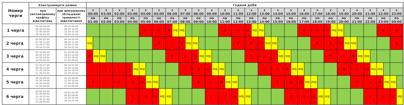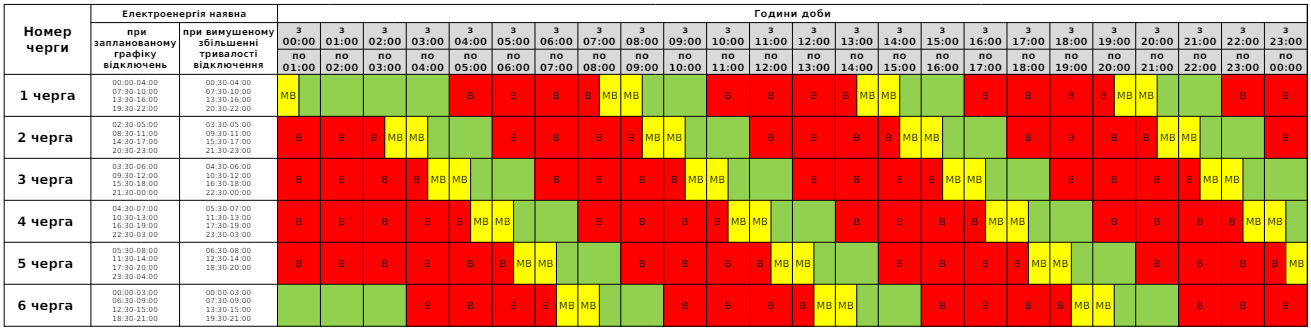 З 00.00 до 17.00 та з 23.00 до 24.00 вимикатимуть світло за графіком: