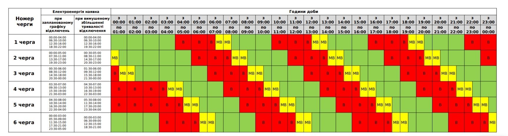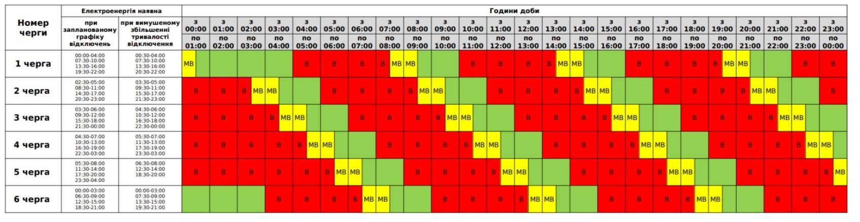 З 00.00 до 8.00 та з 13.00 до 24.00 вимикатимуть світло по три черги.
