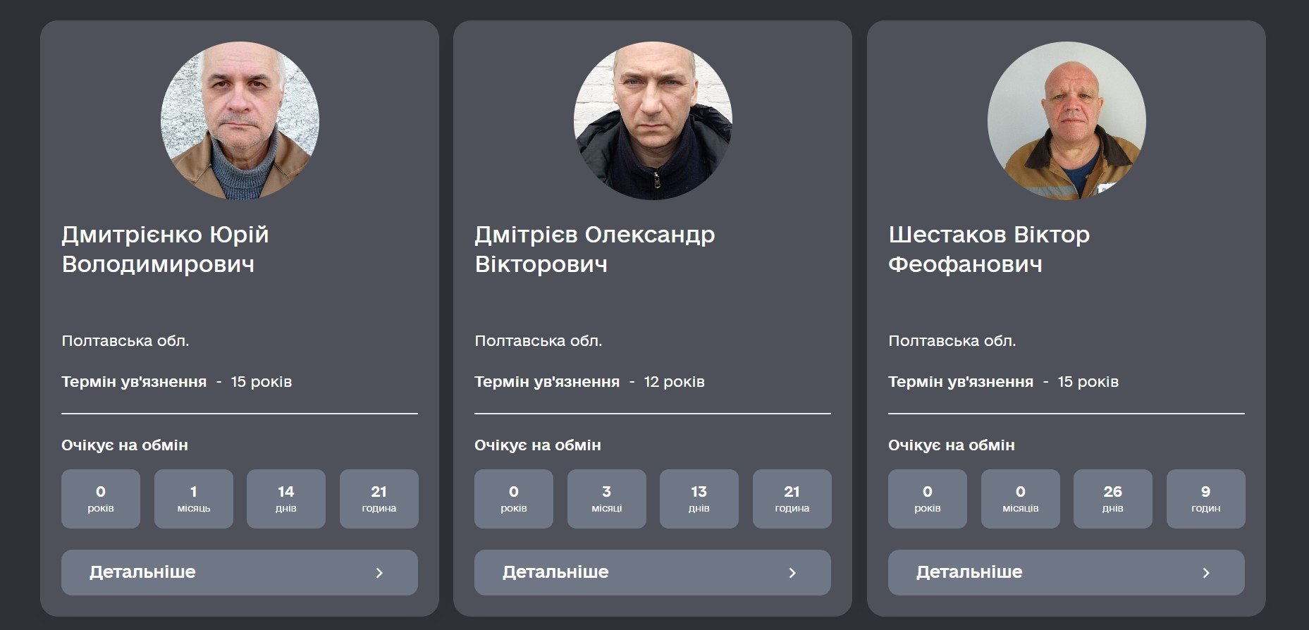 Від Полтавської області на сайті наразі опубліковані три заяви. Серед них — двоє колаборантів із Куп’янська, що на Харківщині, та проросійський журналіст з Полтавщини Віктор Шестаков, якого засудили до 15 років ув’язнення за державну зраду в умовах воєнного стану та виправдовування збройної агресії РФ проти України.
