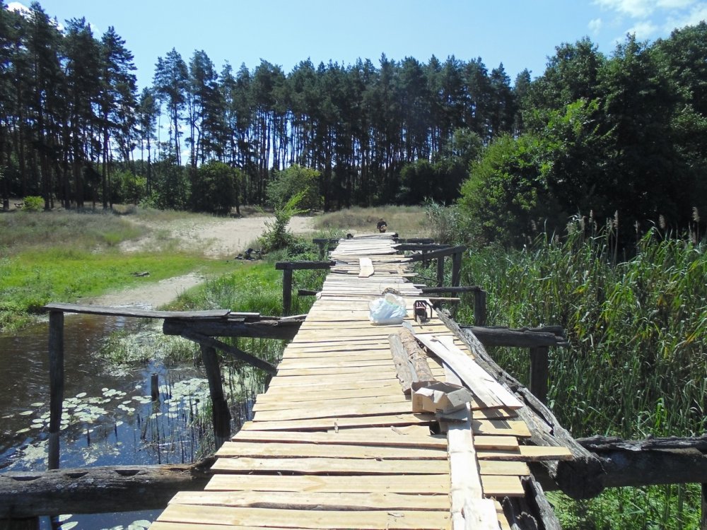 Побудували найдовший дерев’яний міст України у 1933 році. Його довжина — 240 м, ширина — 4 м. Спочатку міст використовувався як транспортний, проте згодом він занепав, і наразі ним користуються лише пішоходи.