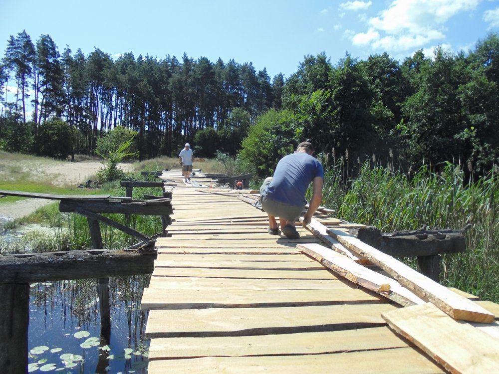На Полтавщині відремонтували найдовший дерев’яний міст в Україні. Фото процесу ремонтних робіт опублікували на сторінці Національного природного парку «Пирятинський».