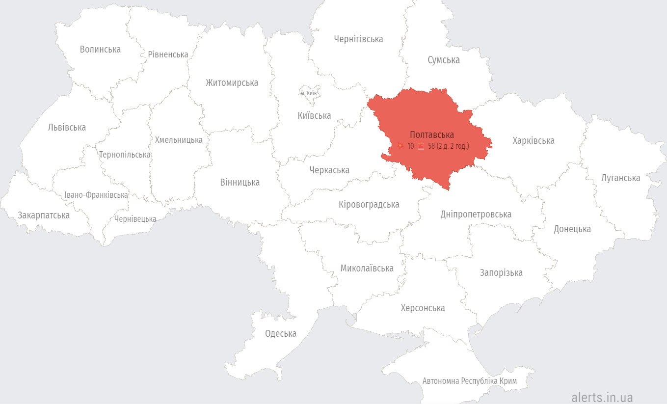 За перші 10 днів серпня Полтавщина опинилася на першому місці серед областей за кількістю повітряних тривог. Такі дані наводять аналітики порталу Аir-alarms.in.ua — статистика повітряних тривог.