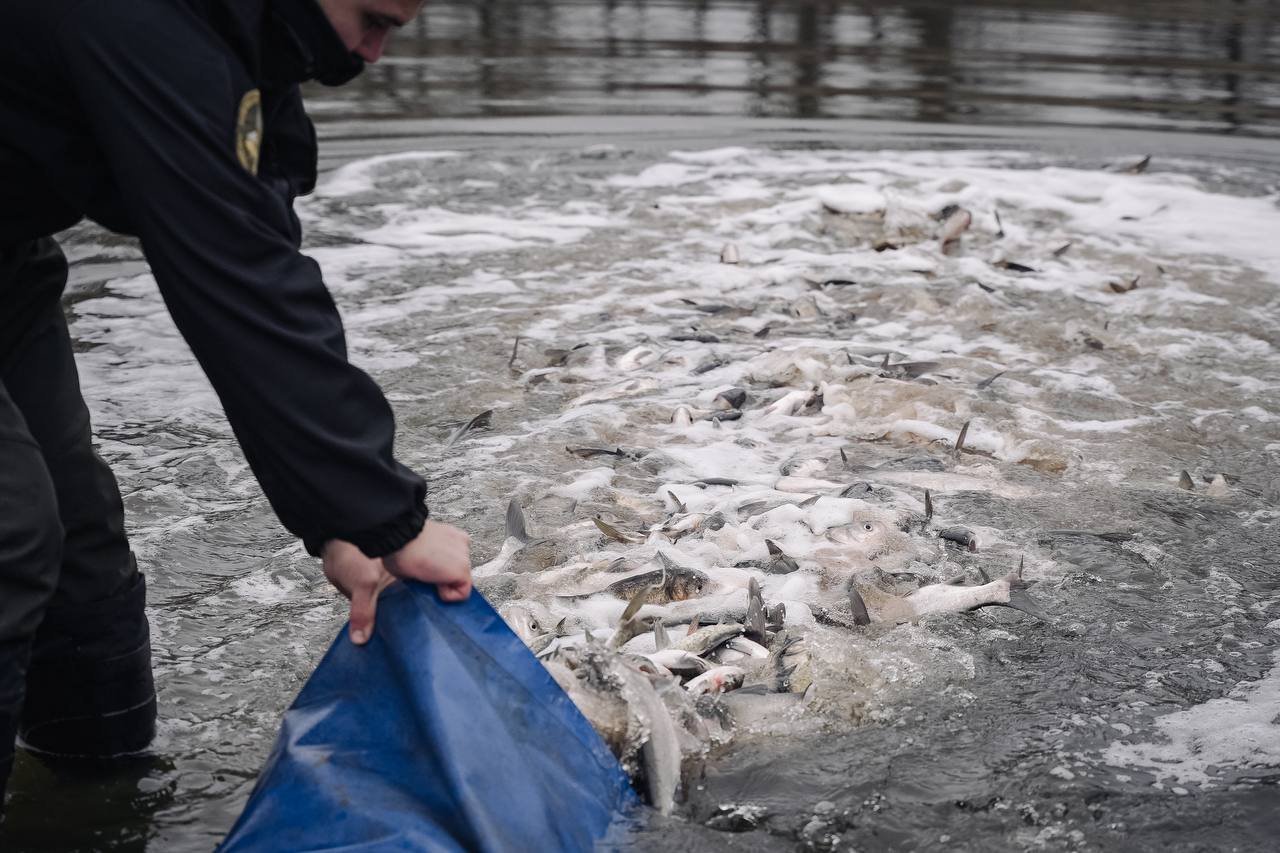 Близько 1,6 тонни товстолобиків випустили у Ворсклу в межах Кобеляк. По 5,5 тонн риби ще випустять у Кременчуцьке та Кам’янське водосховища.