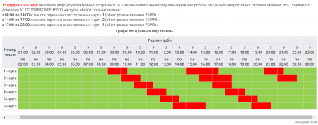 Завтра, 15 грудня, за повідомленням НЕК «Укренерго», в регіоні діятимуть обмеження електропостачання для побутових та промислових споживачів.