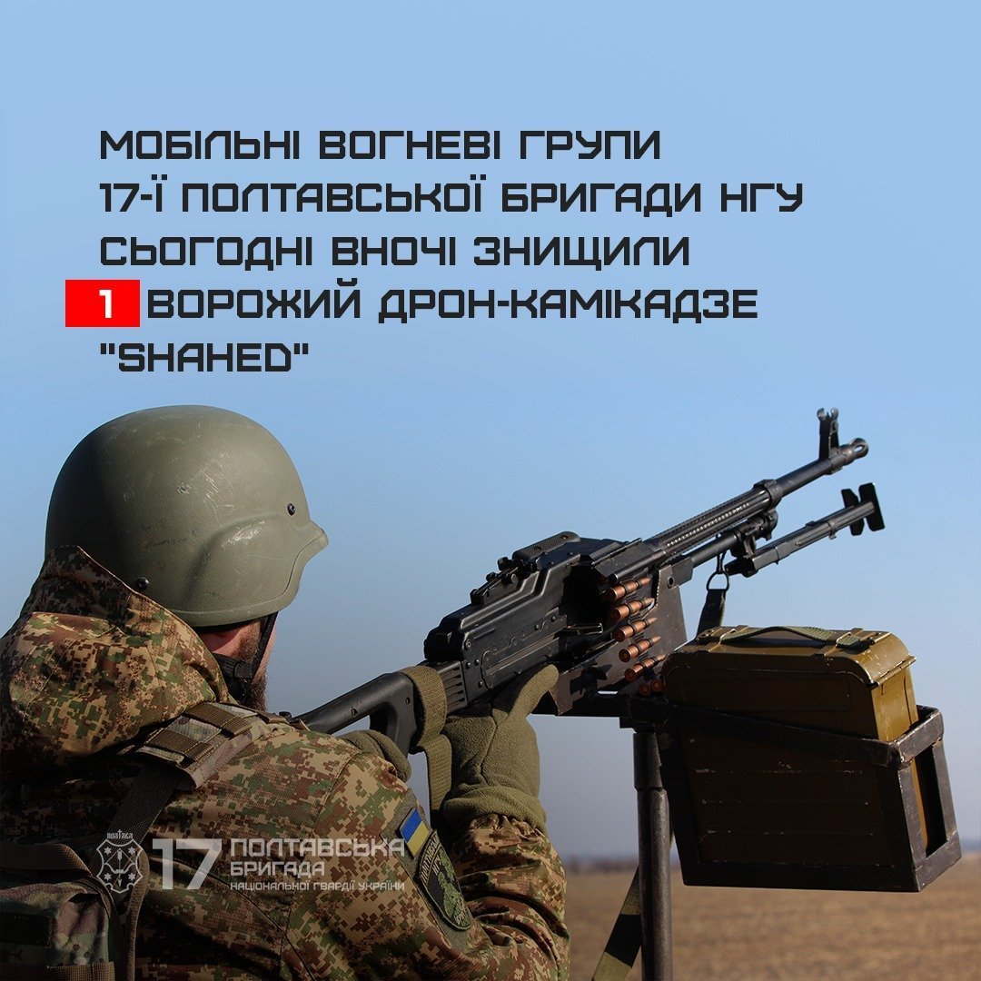 Нагадаємо, «Кременчуцький Телеграф» постійно повідомляє про те, як бійці 17-ї бригади НГУ захищають небо над Полтавщиною, знищуючи російські безпілотники.