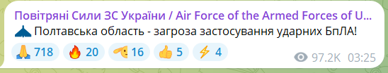 Становили загрозу російські дрони і для Полтавської області.
