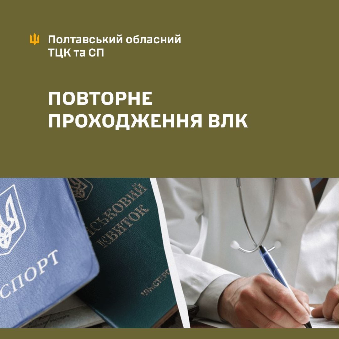 Нагадаємо, Верховна Рада 12 лютого 2025 року ухвалила законопроєкт №4235-ІХ, яким продовжила термін проходження повторної військово-лікарської комісії (ВЛК) військовозобов’язаними, які раніше були визнані обмежено придатними. Цей термін невдовзі спливає. Полтавський обласний ТЦК та СП тиждень тому вже нагадував таким громадянам про необхідність пройти ВЛК, не відкладаючи це на останні дні, коли можуть виникнути черги. Ми про це писали 21 травня.