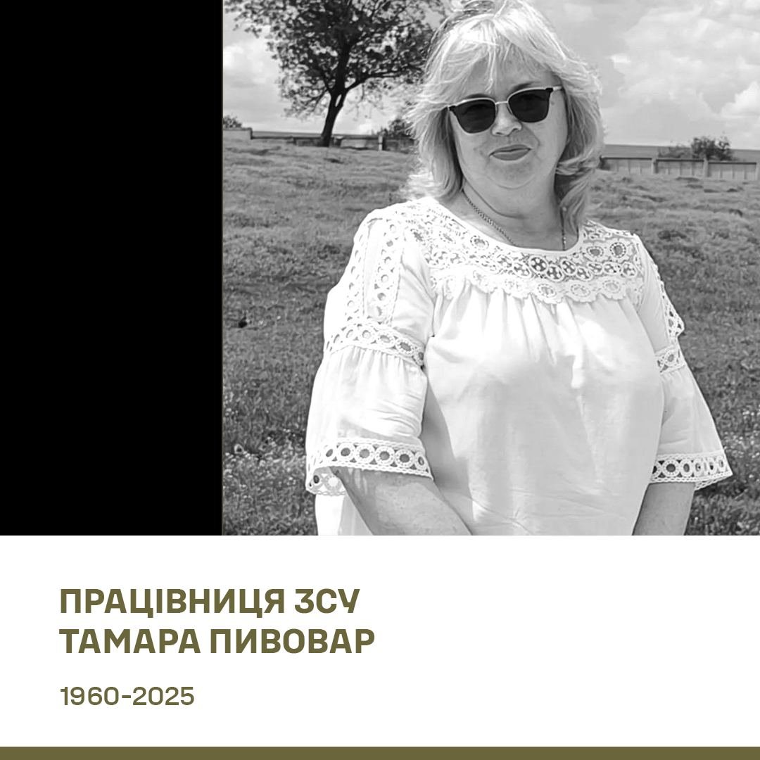 Сьогодні в Полтаві провели в останню путь працівницю Збройних Сил України Тамару Пивовар. Про це повідомила пресслужба Полтавського обласного територіального центру комплектування та соціальної підтримки (ТЦК та СП).