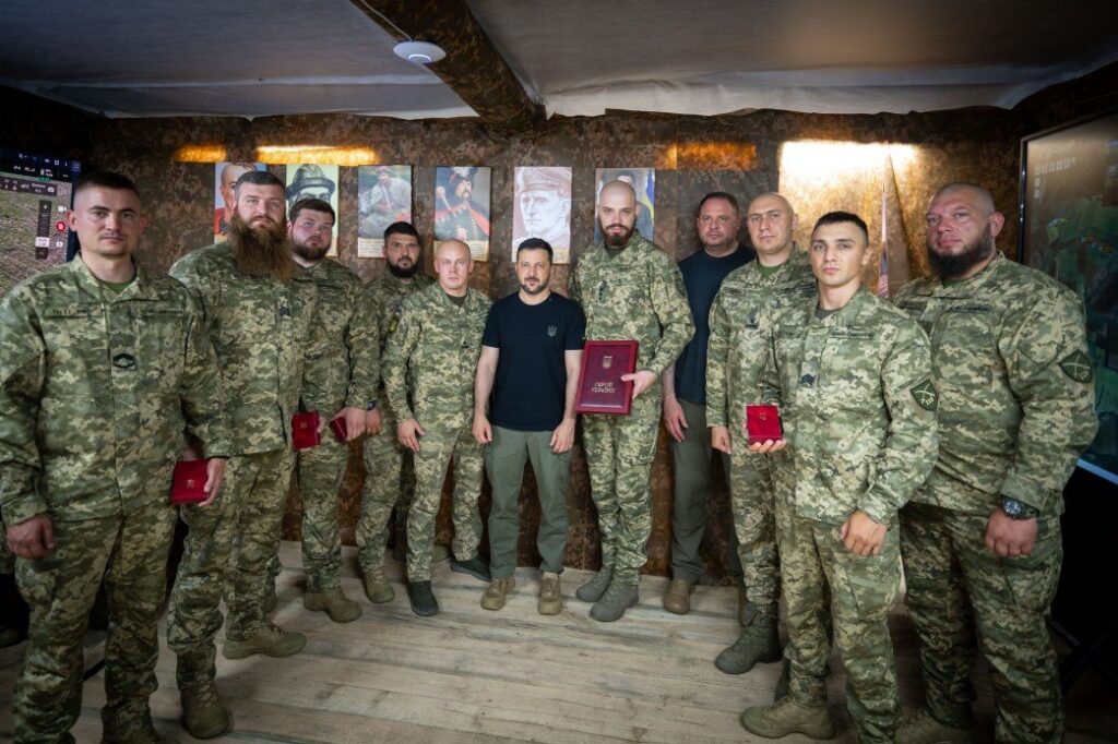 Іван Козін нині служить у 225-му окремому штурмовому полку. Президент зустрівся з ним та іншими бійцями у пункті управління підрозділу на Сумщині.