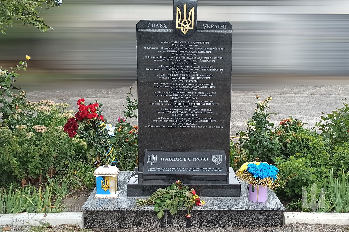У Кобеляках відкрили меморіальну стелу на честь військовослужбовців, які у різний час проходили службу у 3-му відділі Полтавського районного Територіального центру комплектування та соціальної підтримки і віддали життя за незалежність України. Про це повідомили в Полтавському ОТЦК та СП.