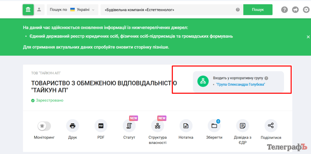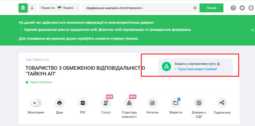 Номер один серед масових засновників-компаній — ТОВ «ТАЙКУН АП». Схоже, це ще один «супермаркет компаній». Адже ТОВ «ТАЙКУН АП», за даними Youcontrol, входить до «орбіти» компаній пана Голубєва. Його інша фірма, «Факторія», займається продажем компаній «під ключ». Придбати готову компанію можна буквально в кілька кліків, немов замовити піцу.