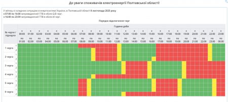 Споживачів просять орієнтуватися на оновлені графіки, які публікують на сайті «Полтаваобленерго». Додамо, що в області діє спеціальний графік аварійних відключень.