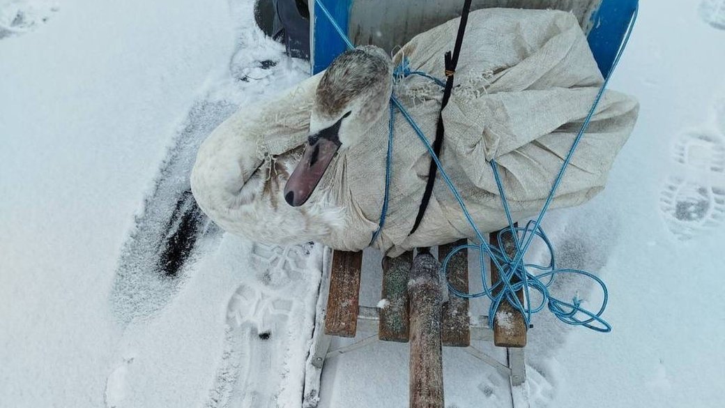 За інформацією фахівців, рибалки знайшли лебедя просто посеред криги. Щоб врятувати птаха, їм довелося близько години добиратися до нього замерзлою річкою, а потім ще стільки ж повертатися назад, везучи лебедя на санях. Після цього вони зв’язалися з волонтерами, які оперативно виїхали на місце.