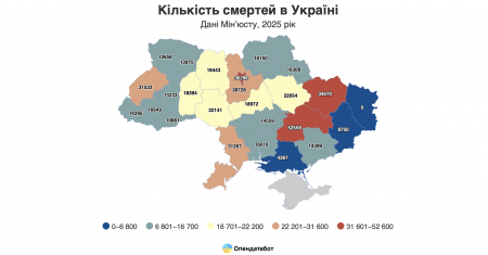 У порівнянні з 2024 роком смертність по країні скоротилася на 2%, однак народжуваність зменшилася ще на 4,5%. Попри те, що темпи падіння поступово сповільнюються після різкого обвалу у 2022 році, порівняно з довоєнним 2021-м дітей в Україні народжується у 1,6 раза менше.