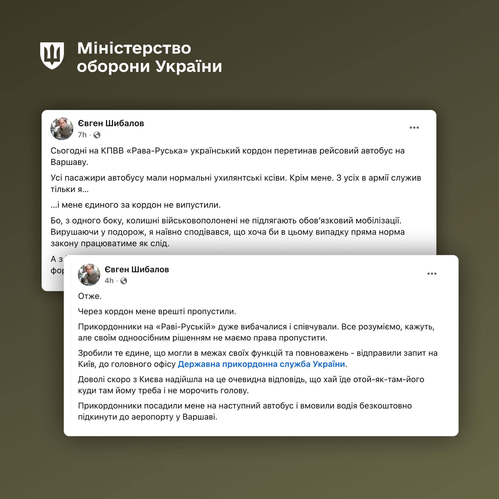 На минулому тижні колишній військовополонений та ветеран з Полтави Євген Шибалов опублікував у соцмережі допис, що його не пропустили через державний кордон України. На момент публікації рішення про відмову в перетині кордону ухвалене ще не було.