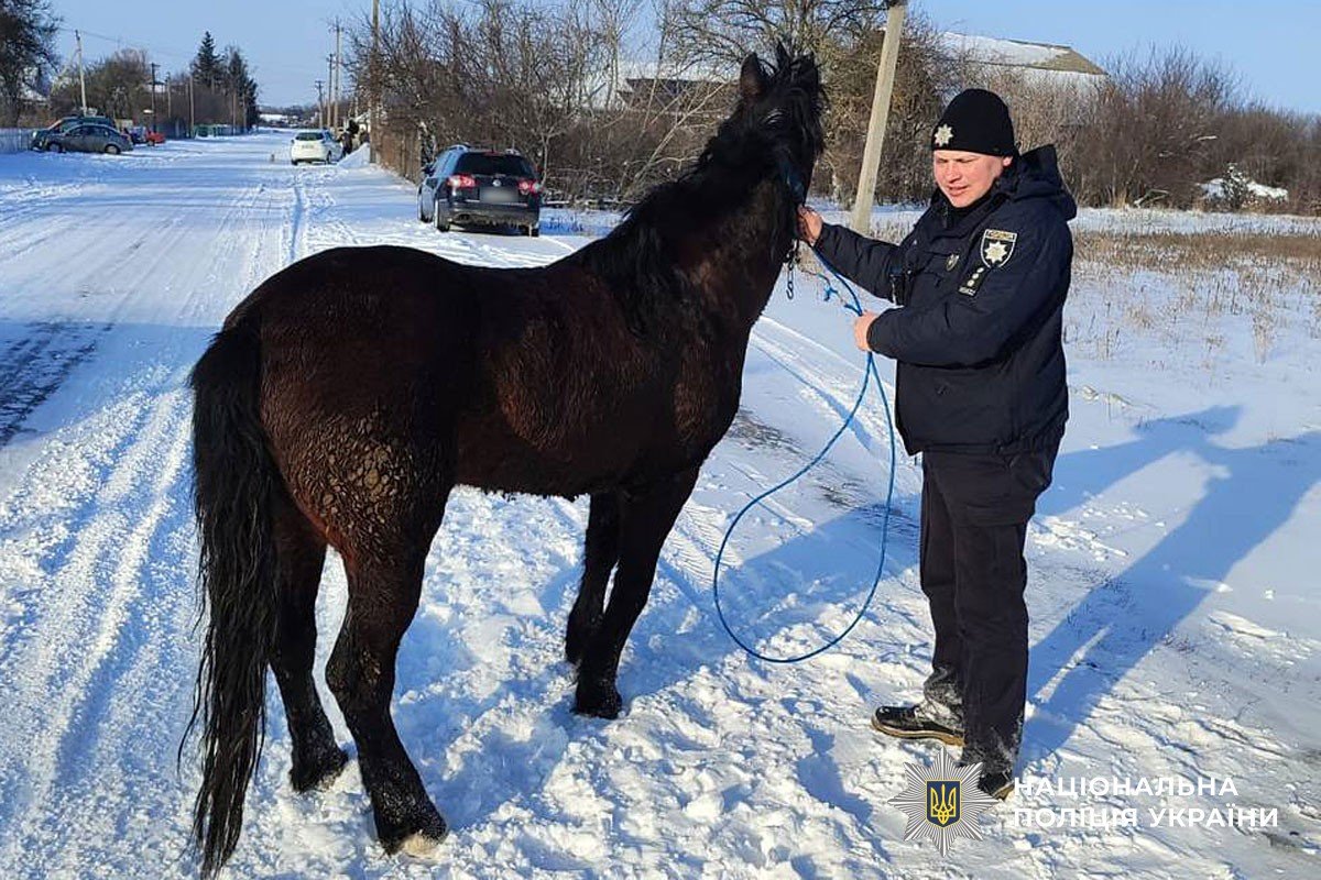 Інформацію про зниклого коня взяв до уваги поліціянти Оржицької громади Тарас Ворона. Під час патрулювання вони помітили у засніженому полі коня, схожого за описом на розшукуваного.