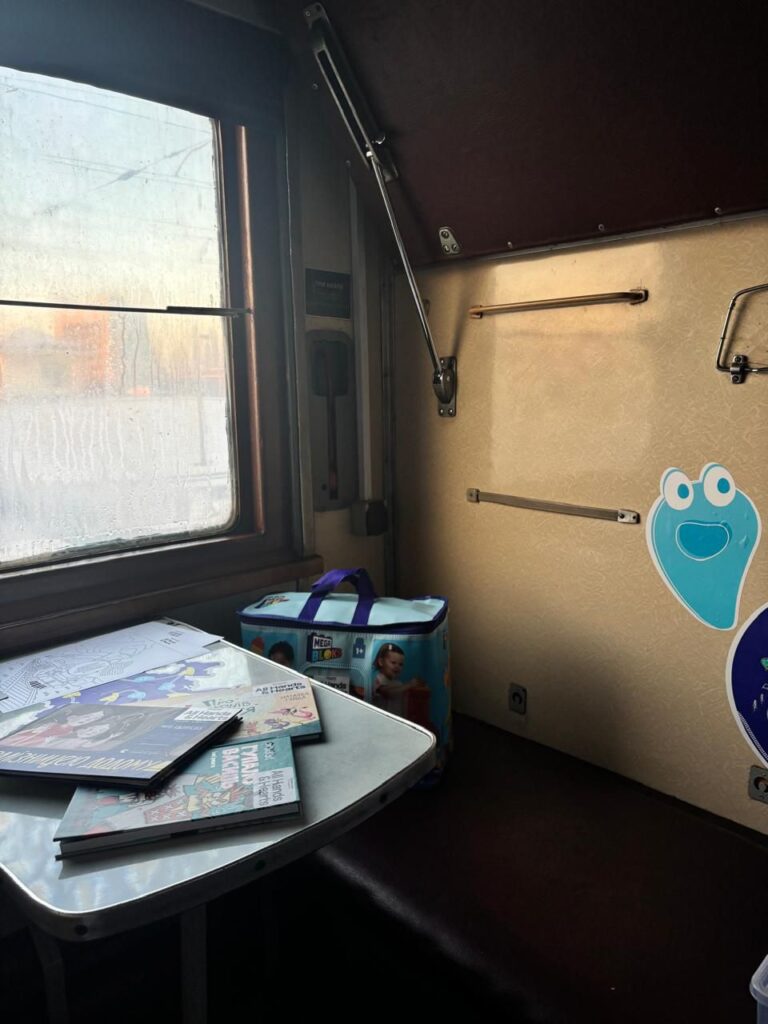 - провести час із дітьми — для них є книжки, розмальовки та мультфільми;