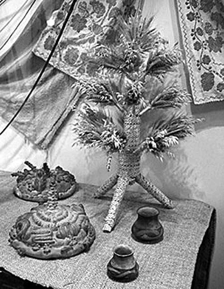 Украшая стол на Святой Вечер, после захода солнца застилают его свежим сеном или соломой. Поверх которого насыпают немного зерна и покрывают скатертью, под которую по углам кладут по зубчику чеснока (он служит оберегом от нечистой силы и болезней). Стоит позаботиться, чтобы в доме на почетном месте стоял «дидух» – праздничный, перевязанный особым образом сноп из пшеницы, ржи или овса. Этот символ олицетворяет духов предков, которые в этот день должны были прийти в гости к родственникам.