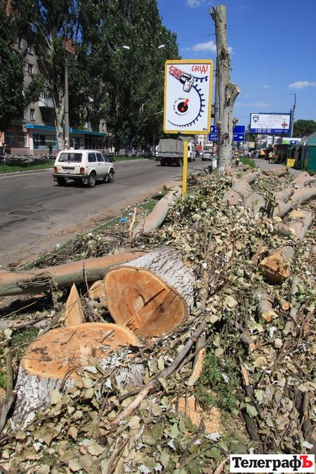 Це – все, що залишилось від величезних тополь Болле, які росли вздовж вулиці Першотравневої, напроти будівельного майданчику «АТБ-торгстрой». Тополі знесли минулої п’ятниці. Як повідомив «Телеграфу» провідний спеціаліст «Благоустрою Кременчука» пан Шавченко, загалом заради будівництва супермаркету «АТБ» знесуть 40 дерев. Підстава для вирубки – рішення міськвиконкому № 527 від 09.07.2010 р. Це – лише одна із десятків вирубок, що тривають у Кременчуці. Ми попросили пана Шавченка вказати, де ж саджають дерева? Іван Юхимович назвав бульвар по вулиці 60 років Жовтня та каштанову алею по вулиці Київській. Ми з ним радо погодились, лише нагадали, що бульвар закладали у 1997-1998-му, а каштанову алею саджали ще раніше. На жаль, Іван Юхимович не зміг нам назвати свіжіші посадки. Можливо, тому, що за останні роки їх просто не робили.