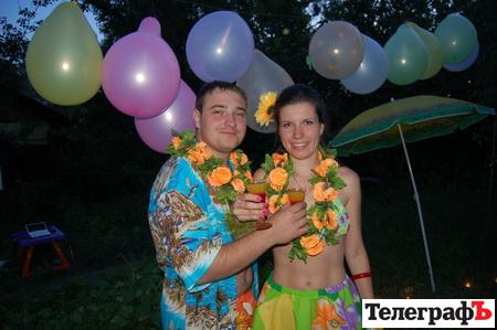 Неподалік «виросла» пальма із бананами – її зробили із картону, причому цим, якраз перед захистом диплому, займалася Тетяна, подруга Катерини. «Островитяни» відмовилися від ліхтарів – їм світили лише свічки, яких було, мабуть, більше сотні, факели та місячне світло. Юра навіть дістав проектор, завдяки якому на дачі з’явилося зображення справжніх Гаваїв – було чутно шум прибою та барабанні ритми.– Мені здавалось, що все це казка. Було таке враження, що це або відбувається не зі мною, або я сплю! – ділиться з нами Катя.
