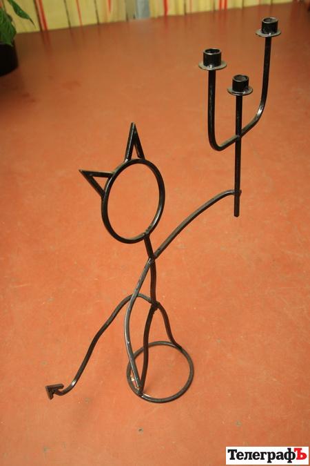 Далі всі ці чудернацькі фігури майстер зварює. А потім покриває фарбою. Ось і все – оригінальний підсвічник готовий!– Можна зробити що завгодно. Зазвичай схеми ми беремо з Інтернету. Однак іноді люди приходять і на словах описують, що вони хочуть. Тоді схему малюємо самі, показуємо її майбутньому господарю, – додає майстер.Він пояснює, що робити металеві витвори можна і вдома, головне, аби були лещата та зварка. Якщо ж купувати вже готовий виріб, то він обійдеться десь від 100 гривень – все залежить від металу, з якого його виготовляють.