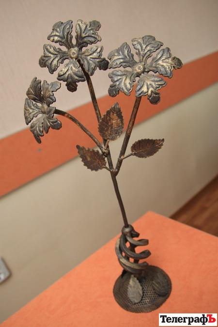 В училищі нам демонструють цілий каталог із фотографіями різних металевих виробів – тут вам і прикраси для дзеркал, і здоровенні підставки для квітів із завитками, і підсвічник у вигляді чортика. Майстри розповідають: кращі вироби вони фотографують на згадку, а далі їх передають чи до кабінетів, чи просто дарують.Виявляється, таку красу створювати не так вже й довго – у дві години можна вкластися: