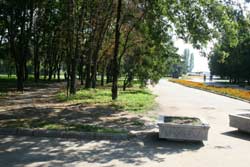 Встановлені у Придніпровському парку бетонні вазони з квітами, покликані перекрити рух автомашин, свою функцію не виконали. Таксисти та автолюбителі знайшли вихід – проклали нову автомобільну колію у кількох метрах від центральної алеї