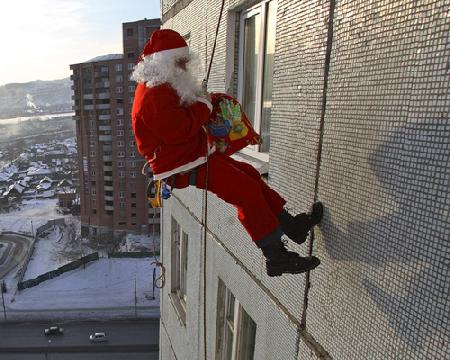 В Полтаве появилась услуга ”Дед Мороз-альпинист”, сообщает gazeta.ua. На заказ он спустится с крыши и передаст через окно подарок.