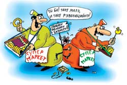 “Процес перерозподілу сфер впливу в регіонах між великим та дрібним бізнесом неминучий, – стверджує Ольга Маслак, доцент економічних наук, завідувач кафедри економіки Кременчуцького державного політехнічного університету. – Це зумовлено законами ринкової економіки. У роки становлення бізнесу капітали формуються у великих містах. В регіонах торгівля, зазвичай, залишається дрібною або сягає середніх масштабів. Накопичивши капітал, великі підприємці вкладають його в розвиток мережі, завойовують нові ринки, притискаючи регіональний дрібний та середній бізнес. Останнім конкурувати з гігантами нелегко, адже крупні підприємці беруть товар більшими оптовими партіями за набагато нижчу закупівельну ціну. Це дає їм можливість “гратися” з роздрібними цінами, певний вид товару свідомо віддавати “у мінус”, а заробляти на іншому. У Кременчуці торговельні гіганти відкрито з’явилися десь три роки тому. Ще приблизно стільки ж часу триватиме перерозподіл сфер впливу між малим і середнім бізнесом. Коли ринки поділяться, ситуація стабілізується”.