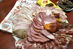 Асортимент м’ясних виробів у „Лавці” – на будь-який смак і гаманець. Продавці кажуть, що видів продукції – понад 300. Очі розбігаються, але сьогодні в руках лише 50 гривень. Тож зупиняємося на чотирьох делікатесах – балику „Сімейному”, „Королівській” шийці, грудинці без кісточки і буженині селянській. Дівчина пропонує всю цю смакоту прямо тут і нарізати. А чому б ні? Погоджуємося. В редакції якраз кудись зник черговий ніж.
