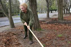 На фото: Олена Меліховець, працівниця Фонду міського майна, в числі трудового десанту 16 квітня на прибиранні парку