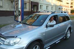 Якийсь час ми нудимося від прикрощів, що ніяк не вдається знайти припаркований “танк”, себто – джип. Натомість раптом бачимо щось подібне – новеньке сріблястого кольору з логотипом Micubishy. І за кермом сидить … не повірите!!! Вічний революціонер Валентин Стасюк. Який скаржиться, що його дорогу покупку невиправдано часто обговорюють на кожному кроці. Цього ж разу здалося, що відомий громадськості депутат кількох скликань ніби чекав, коли ми натрапимо на нього і саме для цього припаркувався на центральній площі. Пан Стасюк побурчав, звичайно, що журналісти його підстерігають на кожному кроці і запевнив, що свого Out-Lander’а не вважає крутим. На першу зарплату Стасюка, за його словами, гуляв весь відділ, куди він влаштувався. На те, що залишилося, молодий заробітчанин купив подарунки батькам і організував святкову сімейну вечерю. “Я 40 років працював інженером-конструктором, щоб купити цей автомобіль, – проголосив Валентин Володимирович, – І батьки – 100 років. Залишили мені свої заощадження. Цікавіше дізнатися, як 20-річні змогли придбати собі дорогі авто!” Далі було щось традиційно-революційне про те, що наш герой не зважаючи на своє крісло керівника апарату ради не продасться нікому. А у дзеркалі вікон Micubishy символічно відбивалася будівля мерії…