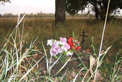 Аби сфотографувати, як злітає зграя голубів, Богдану з другом довелося довго слідкувати за птахами, аби вибрати гарний ракурс. Так вони і йшли вздовж поля між деревами, поки не наткнулись на горбик із квітами. Коли підійшли ближче, таких могилок виявилось кілька. Без оградок, але ухожених. Решта – заросла травою. На одній із могилок була табличка з написом: «Спасибо за верную службу!» А далі нерозбірливо, здається, «собаці» і кличка…