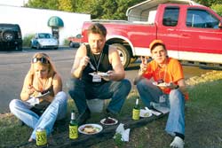 Но больше всего поражает даже не размер машин, а их количество в небольшом, по нашим меркам, Лексингтоне. В городке с населением десять тысяч человек машин, наверное, нет только у школьников младших классов. Дорогу перейти невозможно – несется сплошной поток «танков», аж в глазах рябит. Кстати, сами жители Лексингтона давно не помнят, что это такое – пройтись пешочком на своих двух до ближайшего магазинчика. «Из двух одно, – думают местные, завидев пешехода. – или у него что-то случилось с машиной, или он чужак». О тротуарах вообще разговор особый – их в Лексингтоне практически нет. Как рассказали нам наши друзья-американцы, все объясняется довольно просто. После второй мировой войны правительство США проводило приблизительно такую политику: «В каждую семью по машине!». Политика в Лексингтоне прижилась так, что не просто у каждой семьи, а у каждого члена семьи теперь есть по машине. Наверное, по этой же самой причине за все время нашего пребывания в городке мы так и не встретили ни одного такси. Наш друг Джерри Беллуни, владелец и главный редактор газеты ‘Lexington Chronicle’, говорит, что машины для американцев уже давно не роскошь – кредиты, скидки и все такое. «А главное – у вас галлон бензина стоит пять долларов, – возмущается он. – У нас – чуть больше двух долларов. Может, если бы наши цены на бензин были такими же, как и у вас, то и мы бы начали ходить пешком!»