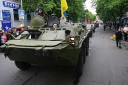 107-ма Ленінградська ордена Кутузова ІІ ступеня ракетна бригада входить на вулицю Ленінську. Народ розмахує квітами, хлопчаки намагаються торкнутися справжнього “бетера”. Дівчата йдуть далі – просять покататися. Двом, до речі, це вдалося.