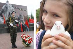 На завершення урочистого мітингу біля меморіалу “Вічно живим” діти випустили в небо білих голубів. Голуби – тримаючись разом – зробили коло над площею, і пішли “на сонце”.