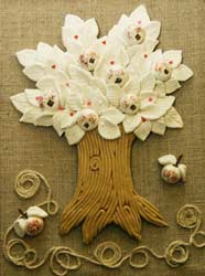 Оленине дерево бажань виконане з солоного тіста, потім висушене та пофарбоване. До речі, кожен листочок прикрашає малесеньке червоне серце.