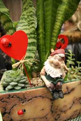 Олена давно вирощує суккуленти і створює з них дуже милі міні-садочки. Живуть у садочках веселі гноми, дерев’яні черепашки та веселі птахи невідомої породи.