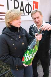 Приз Олена приймала з рук Сергія Кулясова. Нічогенька пляшечка… Олені по-білому заздрила вся редакція