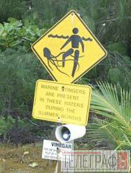 Но самые страшные убийцы в Австралии – вовсе не зелёные чудища, весящие, как хороший телёнок. И далеко не кровожадные белые акулы – я с ними нырял, и ничего, «…на лицо ужасные, добрые внутри…». Настоящие австралийские киллеры невзрачны, не имеют зубов и практически незаметны. Кубическая медуза. Третье место в мировом рейтинге «Самые опасные животные-убийцы нашей планеты»! Яд кубической медузы убивает человека в течение пяти минут – в несколько раз быстрее яда кобры! А мы думаем: чего это на таких прекрасных океанских пляжах северо-востока Австралии никто не купается? Пустынно, как на Марсе. И через каждые 100 метров по всему пляжу – стойки с бутылкой уксуса. Нам говорят: вчера двоих русских, которые не совсем по-английски кумекают, увезли в госпиталь: если бы местные не успели обработать место укуса медузы уксусом – госпиталь им уже был бы ни к чему.