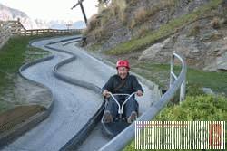 Ещё одно чумное развлечение – катание на колёсных санках с горы. Новая Зеландия – горная страна и количество горнолыжных подъёмников на душу населения зашкаливает. А чем зарабатывать, когда снега нет? А нате, вам, пожалуйста, по склонам гор проложены бетонированные извилистые дорожки с бортами, подымаешься на подъёмнике вверх, краевидами полюбоваться, а назад можешь на санках слететь. Да, да, это на санки похоже, или, скорее даже на корыто с колёсиками и рулём – потянул руль на себя – оно едет, отпустил – тормозит. В общем, тот же картинг, только без мотора, но летишь с горы – дух захватывает! И орут все от удовольствия, как резаные!