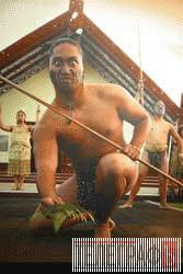 Первооткрыватели Новой Зеландии не были первыми на этих островах – тёплые места уже были обсижены жителями Полинезии. Племена маори – исконные жители страны, и по уровню развития их никак не сравнишь с аборигенами Австралии. Письменность, язык, деревянные скульптуры, резные дома – достаточно развитой народ. Язык у них смешной – они так говорят, как будто орехов в рот насовали – слова типа «нгамокаиакоко», «ронгомараероа», «ваикитехикои» – без бутылки и не выговоришь. Язык маори наряду с английским является вторым официальным в стране и обязательным к изучению для всех жителей, начиная со школы. Есть телевизионный канал маори, радио, выходят газеты, книги – уважают коренных, однако. Маорийцы как таковые, особенно в национальных нарядах – яркое зрелище. Таких татуировок во всё тело не увидишь ни у одного нашего зека – они расписывают в полоску даже лицо. Боевая раскраска маорийского воина дополняется периодически высовываемым языком – считается, что так он страшнее выглядит. По идее, враг должен испугаться (такого длинного языка?) и ретироваться восвояси. Все статуэтки маори тоже делают с высунутыми языками – антураж местный. В общем, мне они понравились, симпатичные ребята, но вот язык высунуть, как они, я не смог – выучка не та…:)