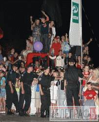 Толпа «обсела» КрАЗ, чтоб лучше видеть и слышать своих любимцев. Очевидцы говорят, что фанаты так усердно болели за своих кумиров, что изрядно помяли железную махину.
