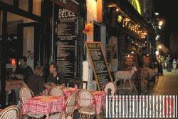 Кафе в Латинском квартале. Не бойтесь умереть от голода в Париже. И не рвитесь, если хотите есть, на респектабельные Елисейские поля. Доверяйте классикам. Вот, например, Хэмингуэй всегда ужинал в Латинском квартале. Или рядом – на Монпарнасе. Мужчина он был экономный и знал, что делает. В Латинском квартале и сейчас – несмотря на инфляцию и разгул мирового терроризма – очень прилично можно поужинать. Причем без знания языка и за умеренные деньги. Владельцы кафе и закусочных лавок, не мудрствуя лукаво, выставляют в витринах готовое (или сырое) фирменное блюдо, а рядом ценник. Ходите, ищите, что вам нужно, а потом просто тычете пальцем. Для прикола можете добавить «силь ву пле» или «пардон» – что вам больше нравится. Лосось или кусок бараньей ноги обойдется где-то в 22 евро. Стандартное меню «ужин холостяка» – 11-16 евро. Вино, конечно, отдельно. За стакан шабли заплатите 5 евро. А пока будете его пить, увидите уйму интересного – улицы в квартале узкие, столики прямо на тротуарах стоят, музыканты разные бродят, за столиками микродрамы разыгрываются.
