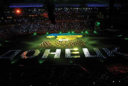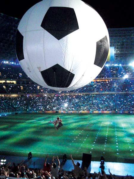В Донецке состоялось грандиозное открытие первого в Восточной Европе пятизвездочного стадиона «Донбасс-Арена», способного принять 50 тысяч зрителей..