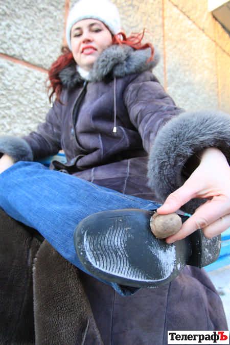 І яка розумна людина порадила натерти підошву картоплею, аби менше ковзати? Я сумлінно розрізала картоплю, добре натерла підошви, взулася і… поїхала як корова на льоду. І не дарма, бо картоплею іноді навпаки натирають дерев’яні бруси, аби меблі краще ковзали при транспортуванні. Насправді, кажуть, цей овоч таки може полегшити пересування в ожеледицю, просто у інший спосіб. Натерти картоплю на терці, нанести кашку на підошву та залишити на ніч на морозі. Однак це доволі заморочливо, а кашка все одно швидко відпаде з підошви. Тож краще не мудрувати, а придбати взуття із підошвою «як трактор».