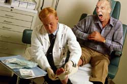 був у вас позавчора. Зробіть мені знімок, бо рука напухла і болить”. Незважаючи на заперечення лікаря, чоловік домовляється з лаборантом, робить знімок, але травматолог не знаходить відхилень. Виходячи, хворий доволі агресивно вигукує, що не довіряє лікарям: “Всі ви такі, ото не дарма вас карають”, – і хряпає дверима.