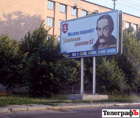 Полтавська обласна організація ВО «Свобода» напередодні свята розмістила в обласному центрі на біг-бордах зображення Івана Мазепи з гаслом «Мазепа переміг! Українська Держава є!». Реакція полтавської влади була миттєвою – відбулося позачергове засідання міськвиконкому, на якому керівникам рекламних агентств заборонили розміщувати подібну рекламу. Полтавський міський голова Андрій Матковський звернувся до рекламістів утриматься від розміщення будь-якої інформації, що може образити національну гідність чи політичні погляди тих, хто візьме участь у відзначенні 300-річчя Полтавської битви.