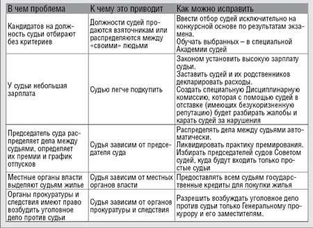 Что мешает судьям судить справедливо? Как это исправить? Вот какие ответы дала комиссия (см. таблицу).