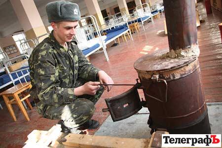 Заходим на КПП. Зябко, дежурных спасает только теплая военная форма. Но даже она вряд ли поможет, если просидеть здесь целый день. Нас ведут в казарму, где живут солдаты-срочники и наглядно демонстрируют, как государство заботится об украинской армии. Расположение греют четыре чугунные, ржавые печки-буржуйки. Рядом с каждой лежит кучка дров – солдаты время от времени подбрасывают их в печи, чтоб огонь не погас.